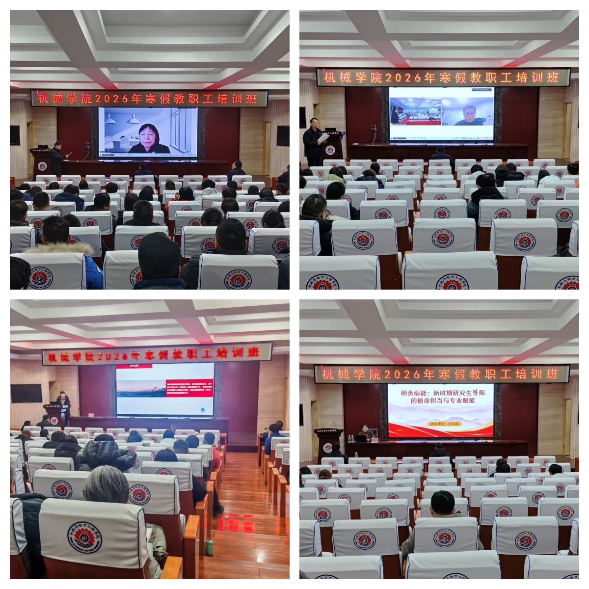 于2026年1月18日至20日,组织全体教职工开展2026年寒假集中培训,共安排6场教师业务能力提质提升系列专题讲座。