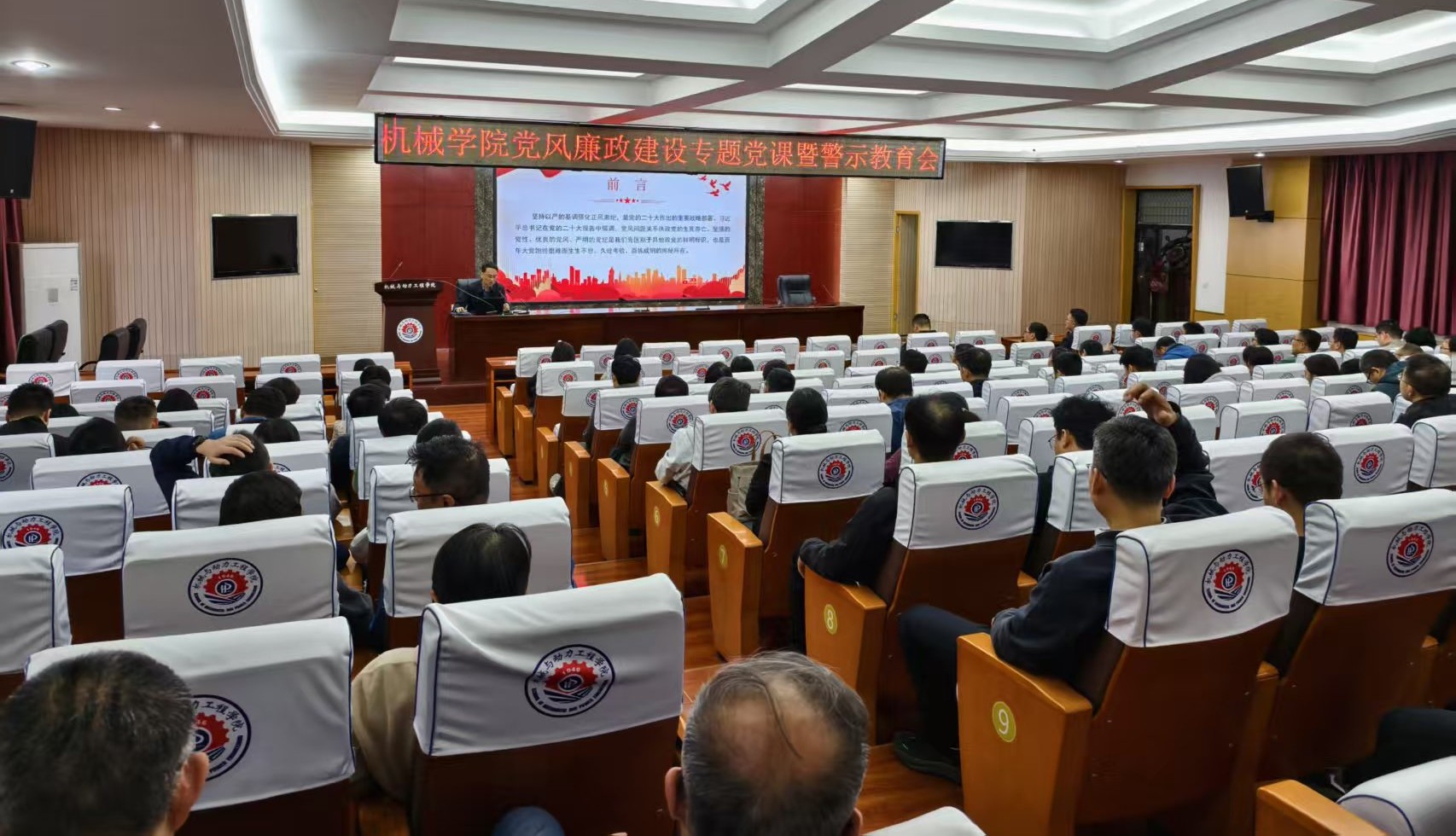 在205会议室召开党风廉政建设专题党课暨警示教育会。学院副院长焦锋以“以严的基调强化正风肃纪”为主题,为全院党员干部、教职工讲授专题廉政党课。
